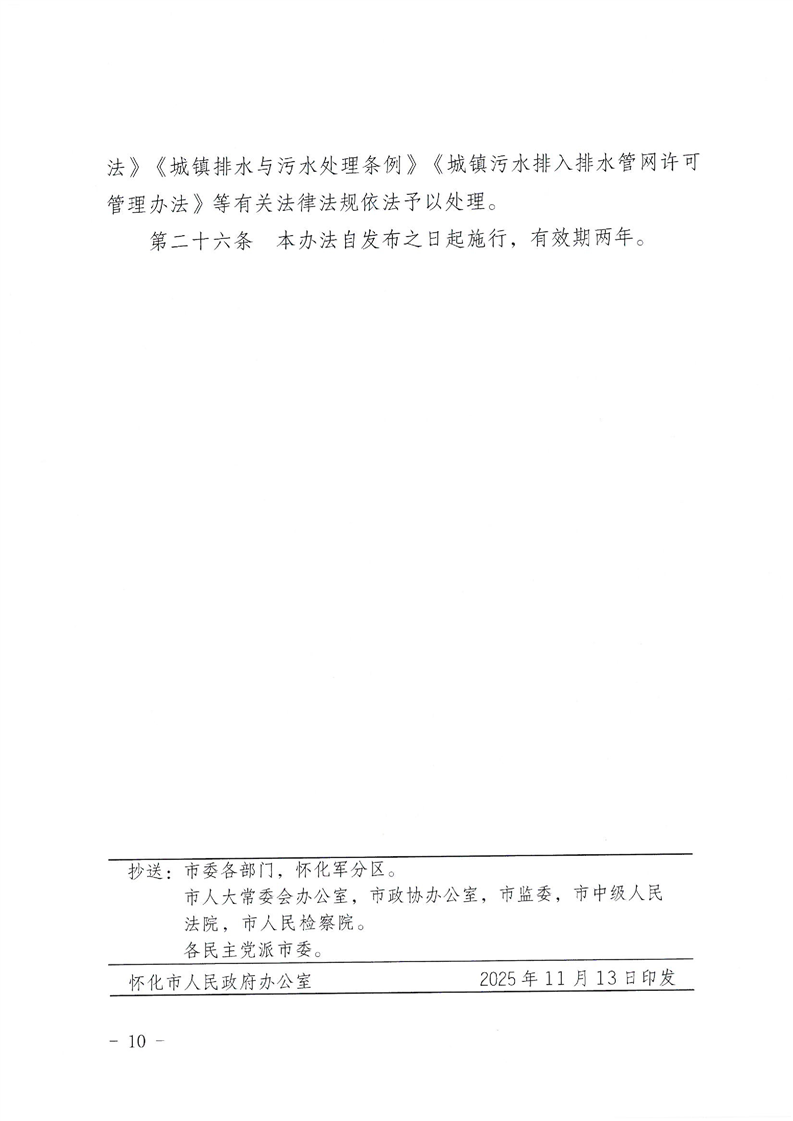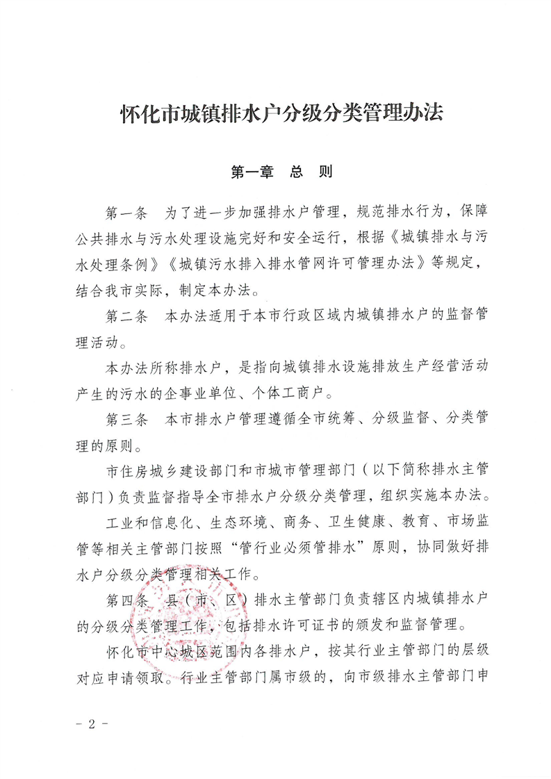 懷化市人民政府關於印發《懷化市城鎮排水戶分級分類管理辦法》的通知