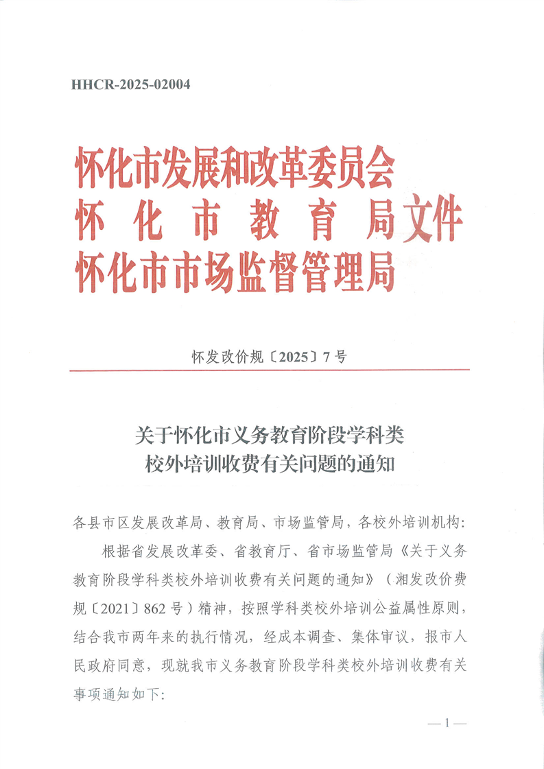 文號:懷發改價規〔2025〕7號