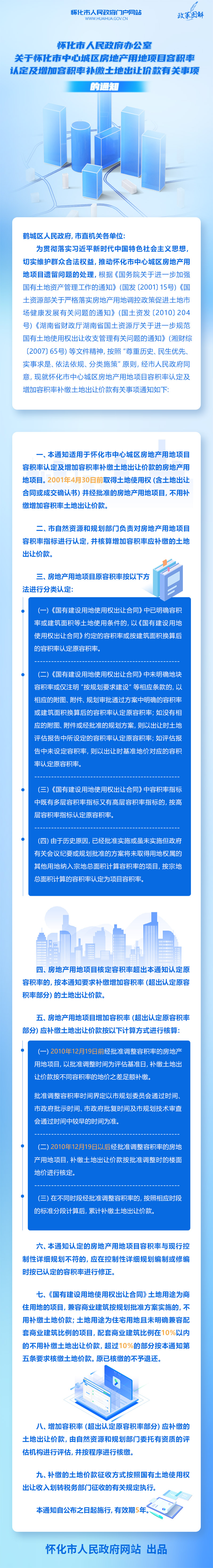 • 懷化市自然資源和規劃局解讀《懷化市中心城區房地產用地項目容積率認定及增加容積率補繳土地出讓價款有關事項的通知》
