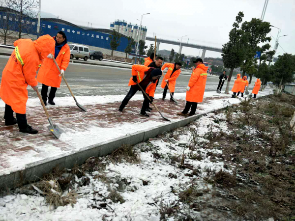 1月26日,經開區環衛所121名幹部職工分別在舞水一橋(舞水大橋)、二橋(天星大橋),三橋(大泉大橋)、四橋(張家灣大橋),五橋(李公灣大橋)、辦公區域及周邊、垃圾站、公廁及周邊進行鏟雪除冰。經開區四大隊對經開區重點路段實施交通管製,設置警示標牌,安排執勤人員輪流全天候進行交通疏導,確保道路交通安全。對風光帶遊步道、及市民廣場、舞陽公園等較陡的路段、懸空步道、斜坡台階均拉設警戒線,並設立了73塊警示標牌。