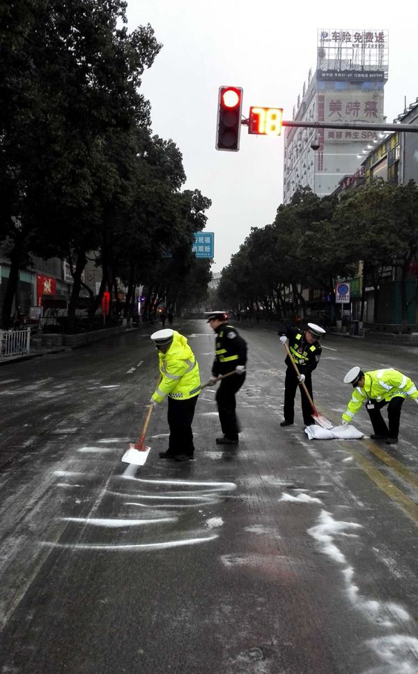 一、農村: G209國道全線結冰,於1月26日晚18時對客運車輛及7座以上車輛禁止通行,7座以下車輛必須安裝防滑鏈才能通行。因道路結冰,單方一般事故多發,民警迅速出警,及時處置,並妥善安置事故當事人;黃金坳座岩上坡因冰雪路滑,滯留車輛較多,民警協助駕駛人安裝防滑鏈,撒鹽除雪,幫助群眾。