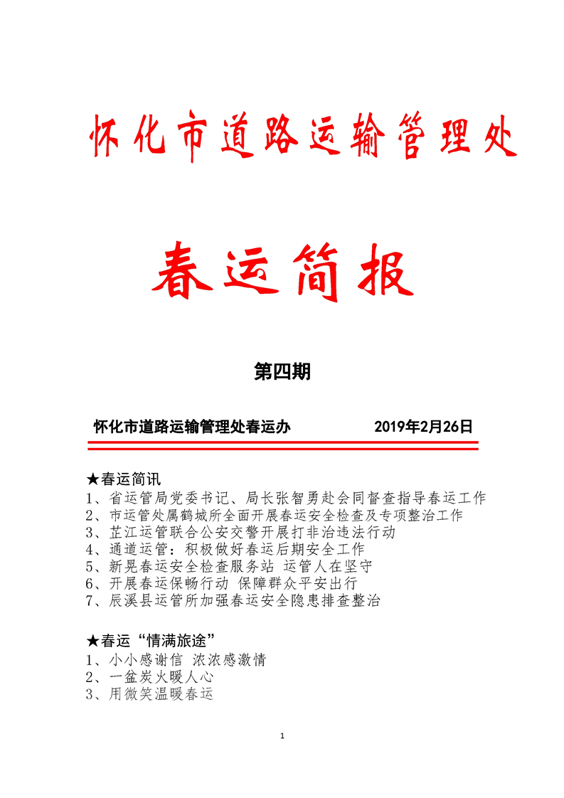 懷化市道路運輸管理處2019年春運簡報(第四期)