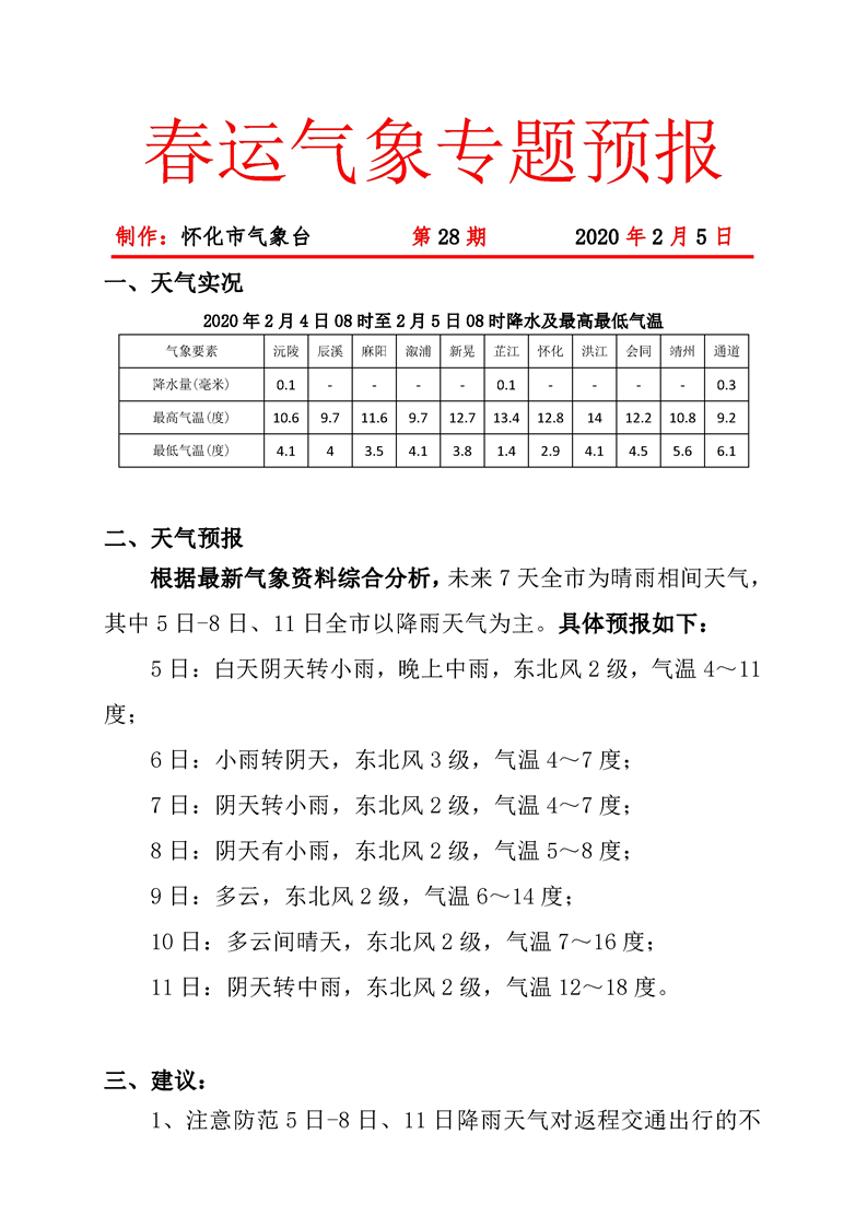 春運氣象專題預報 第28期