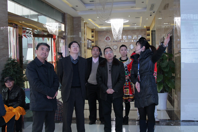 (圖4 懷化市委秘書長謝宏有聽工作人員介紹淘野網)