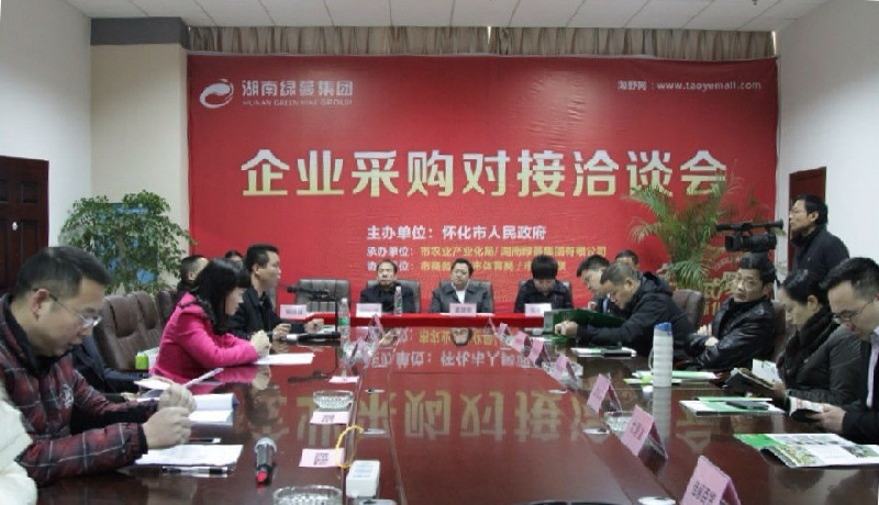 在開幕式之後的企業洽談會上,市商務局局長吳德雄發表重要講話,表示真誠希望各企業為社會提供更多順應市場需求、價廉物美、可信可靠的產品努力提高懷化市名優特產品的知名度,以優質、綠色、生態、安全的產品和優良的服務贏得客商和消費者的永久信賴。並通過淘野網這一特色電商平台,向各界朋友展銷和推介武陵山片區特別是懷化本地的名優特產品。中國采購協會秘書長諶建章及省體育局副局長祈小紅表示,常年與綠蔓集團合作愉快,采購物品物美價廉綠色健康,在未來要更加緊密的進行合作,並在現場簽訂采購合同。