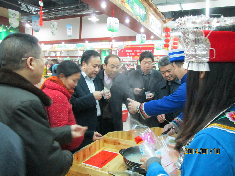 “生態武陵,吉祥懷化”湖南武陵山(懷化)首屆名優特農產品新年展銷會於10日在武陵山特色農產品電子交易中心盛大開幕。湖南省內300餘家農特企業參展,商品涵蓋武陵山片區的5000餘款主要特色商品,以綠色、安全、生態為主題,種類包括糧油製品、畜禽製品、茶酒飲料、土特產品、休閑食品、調味品及其它便民消費品。
