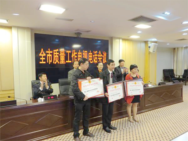 李暉市長代表市委市政府向獲獎單位表示祝獲並頒發證書牌匾,鼓勵企業在各自的行業和領域,嚴格質量控製和管理,帶動全市質量工作水平上台階。