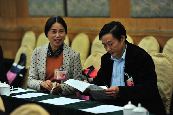 散會後還留在原地討論的代表們