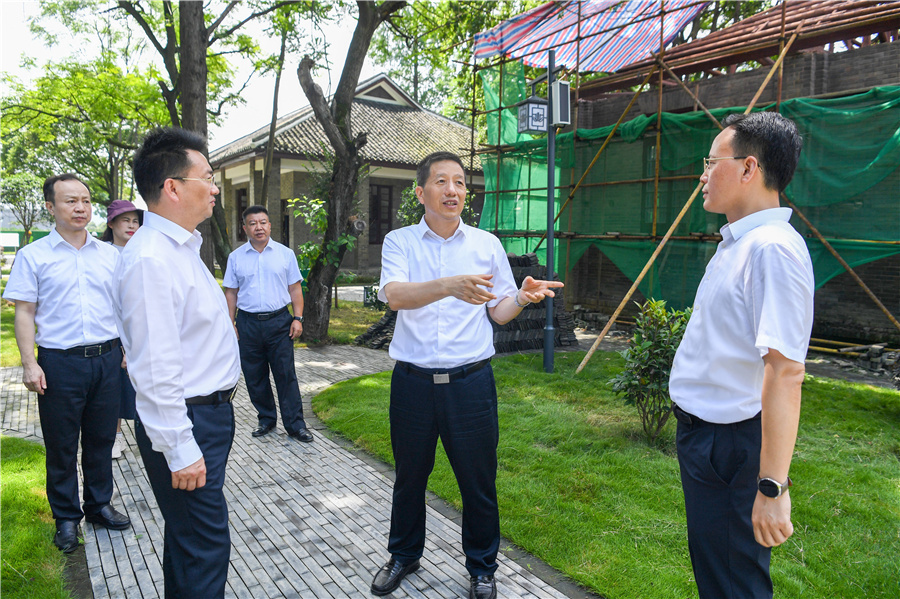 (6月13日,市委書記許忠建在洪江市、洪江區調研省旅發大會重點項目建設。圖為許忠建在洪江市安江農耕文化旅遊區了解黔陽專署舊址項目提質改造情況。)
