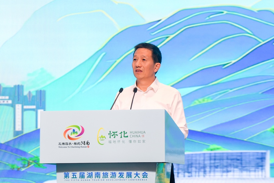 ▲9月17日上午,第五屆湖南旅遊發展大會開幕,市委書記許忠建作懷化文化旅遊推介。(懷化日報全媒體記者 楊智偉 攝)