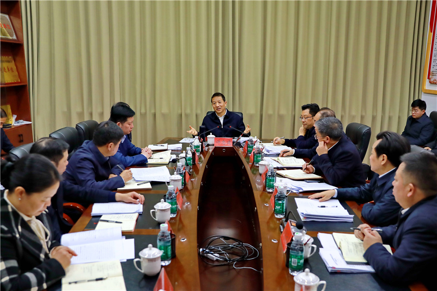(許忠建主持召開中央巡視組移交信訪件辦理和重複信訪治理工作調度會。以上照片均由懷化日報全媒體記者 彭軍 攝)