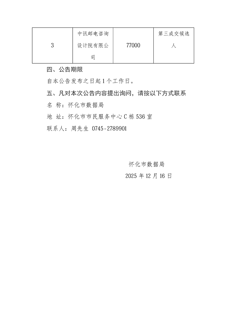 懷化市政務雲服務采購項目及懷化市政務雲綜合服務采購項目谘詢服務成交結果公告