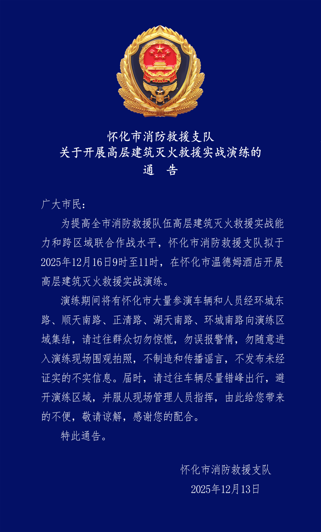 懷化市消防救援支隊關於開展高層建築滅火救援實戰演練的通告