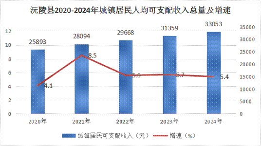 全縣城鄉居民人均可支配收入為22452元,同比增長6.4%。其中,城鎮居民人均可支配收入33053元,同比增長5.4%;農村居民人均可支配收入16213元,同比增長6.6%。