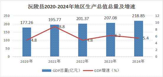據初步核算,全縣地區生產總值 218.85億元[2],同比增長5.4%(按可比價格計算,下同)。其中,第一產業增加值34.44億元,同比增長2.7%;第二產業增加值83.21億元,同比增長7.2%;第三產業增加值101.19億元,同比增長4.8%。三次產業結構為16:38:46。按常住人口計算,全縣人均地區生產總值為44365元,同比增長6.8%。