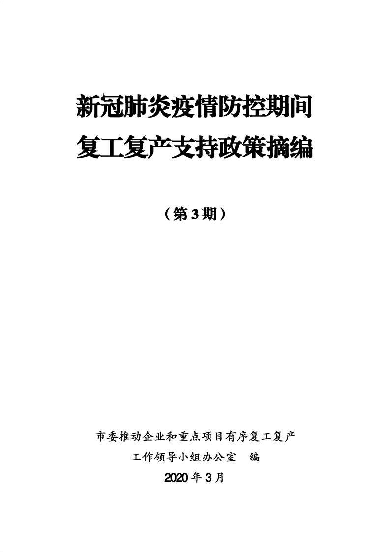 新冠肺炎疫情防控期間複工複產支持政策摘編(第3期)