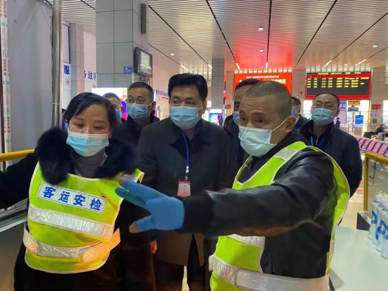 1月28日下午(春運首日),懷化市副市長、市春運領導小組組長熊安台帶領春運領導成員單位負責人一行,赴高鐵站、火車站、汽車站、春運安全檢查站、冷鏈物流園區、省高速懷化分公司指揮中心檢查春運安全及疫情防控工作。(市春運辦)