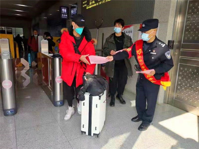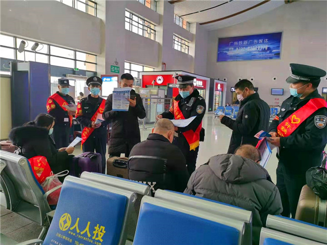 同時,宣傳民警還結合當前工作重點,在候車室、出站口、售票廳等向旅客廣泛的開展防電信網絡詐騙宣傳、愛車護路宣傳、疫情防控宣傳、防扒安全防範宣傳等相關知識,並給旅客發放了春運安全出行手冊,提醒旅客乘坐列車出行的需要注意的安全事項。