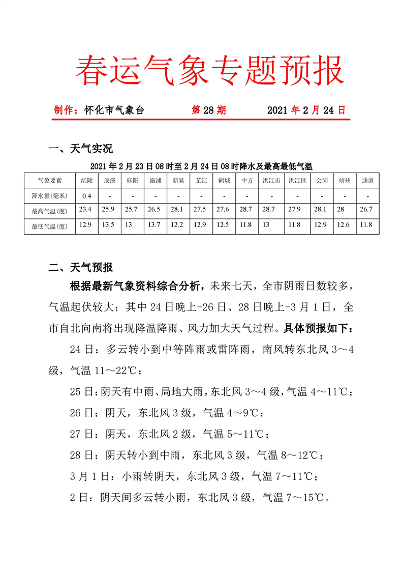 春運期間氣象專題第28期