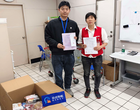 ▲工作人員進超市抽樣