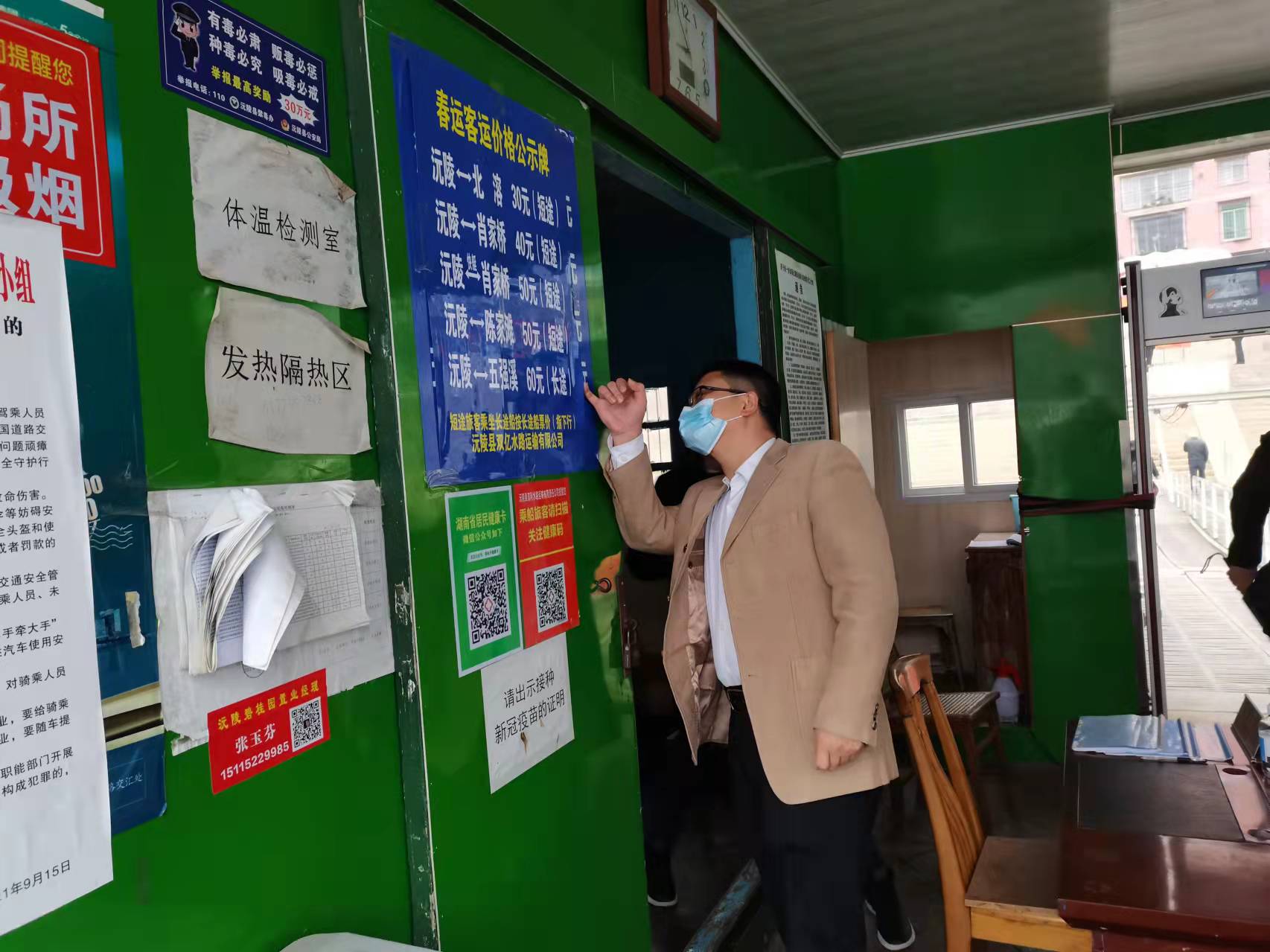 1月20日上午,沅陵縣委常委、副縣長唐德勝帶隊在車站、碼頭開展春運安全生產及疫情防控工作檢查。