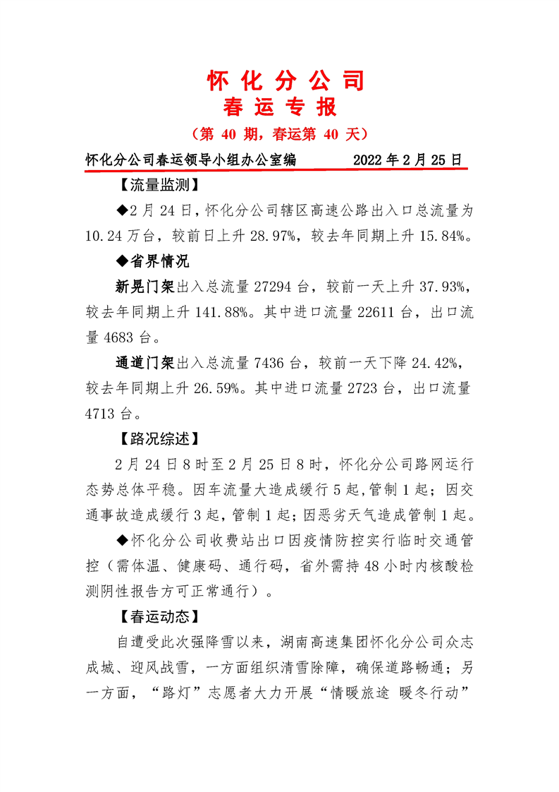 2022年高速懷化分公司第40期春運專報