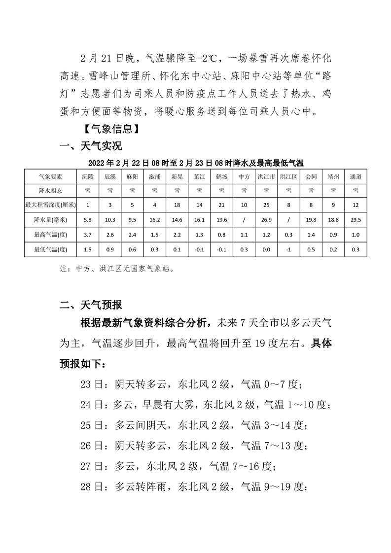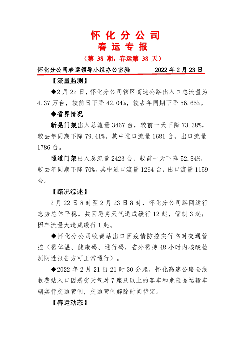 2022年高速懷化分公司第38期春運專報