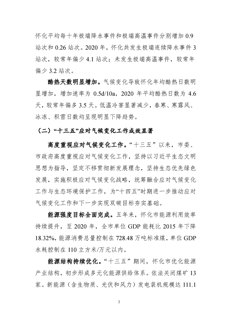 懷化市“十四五”應對氣候變化規劃