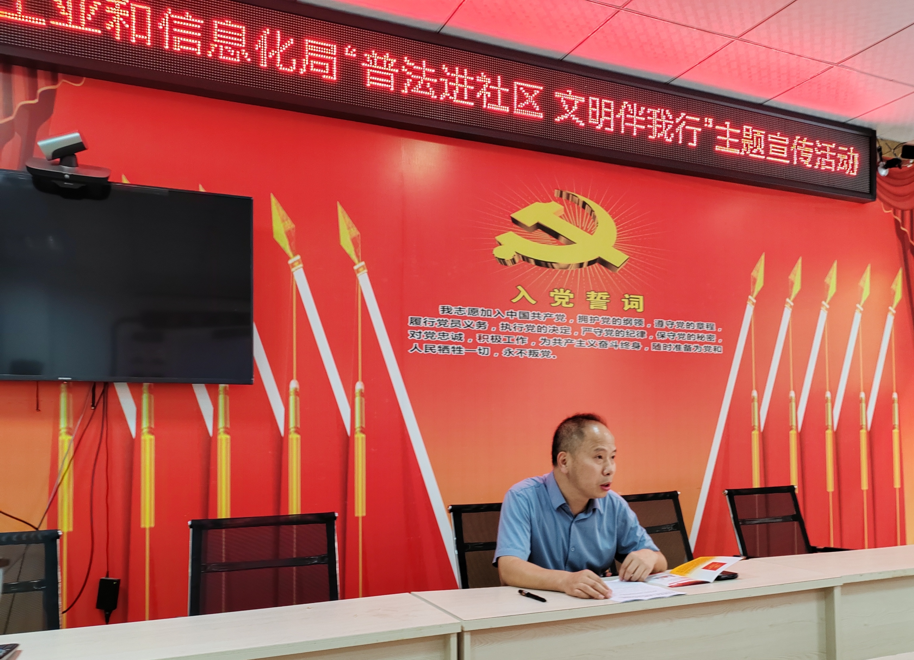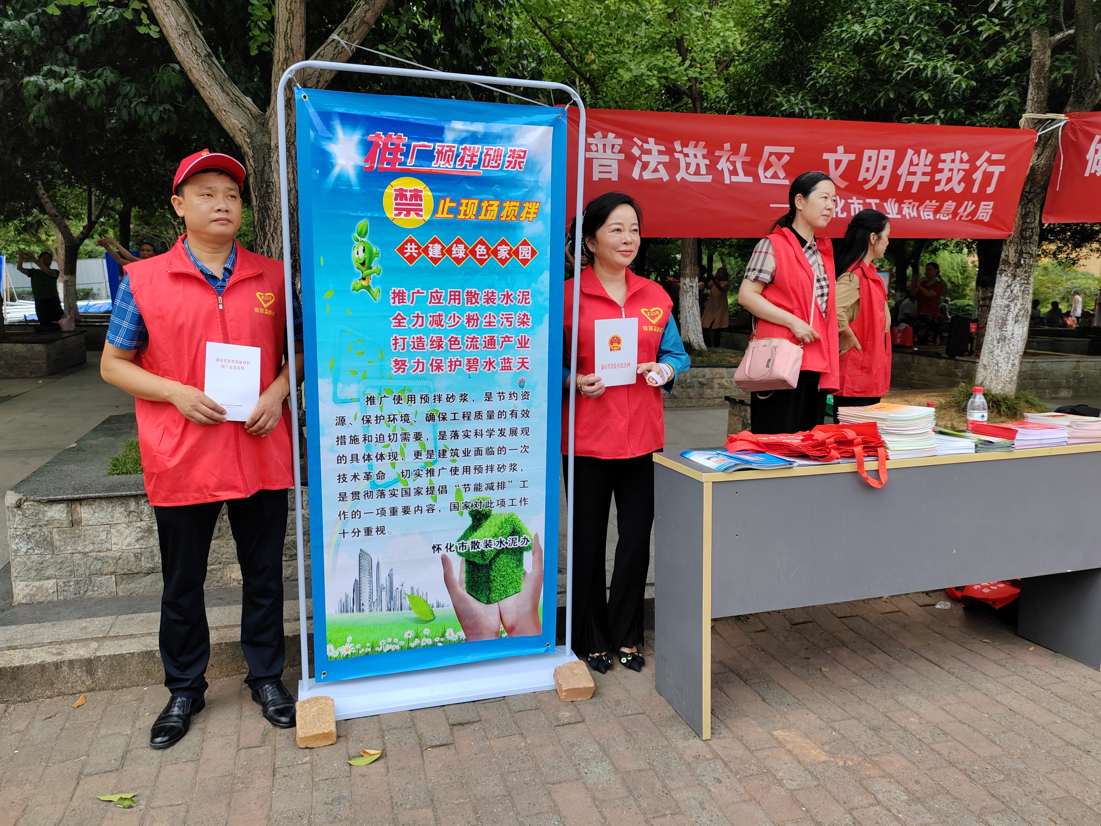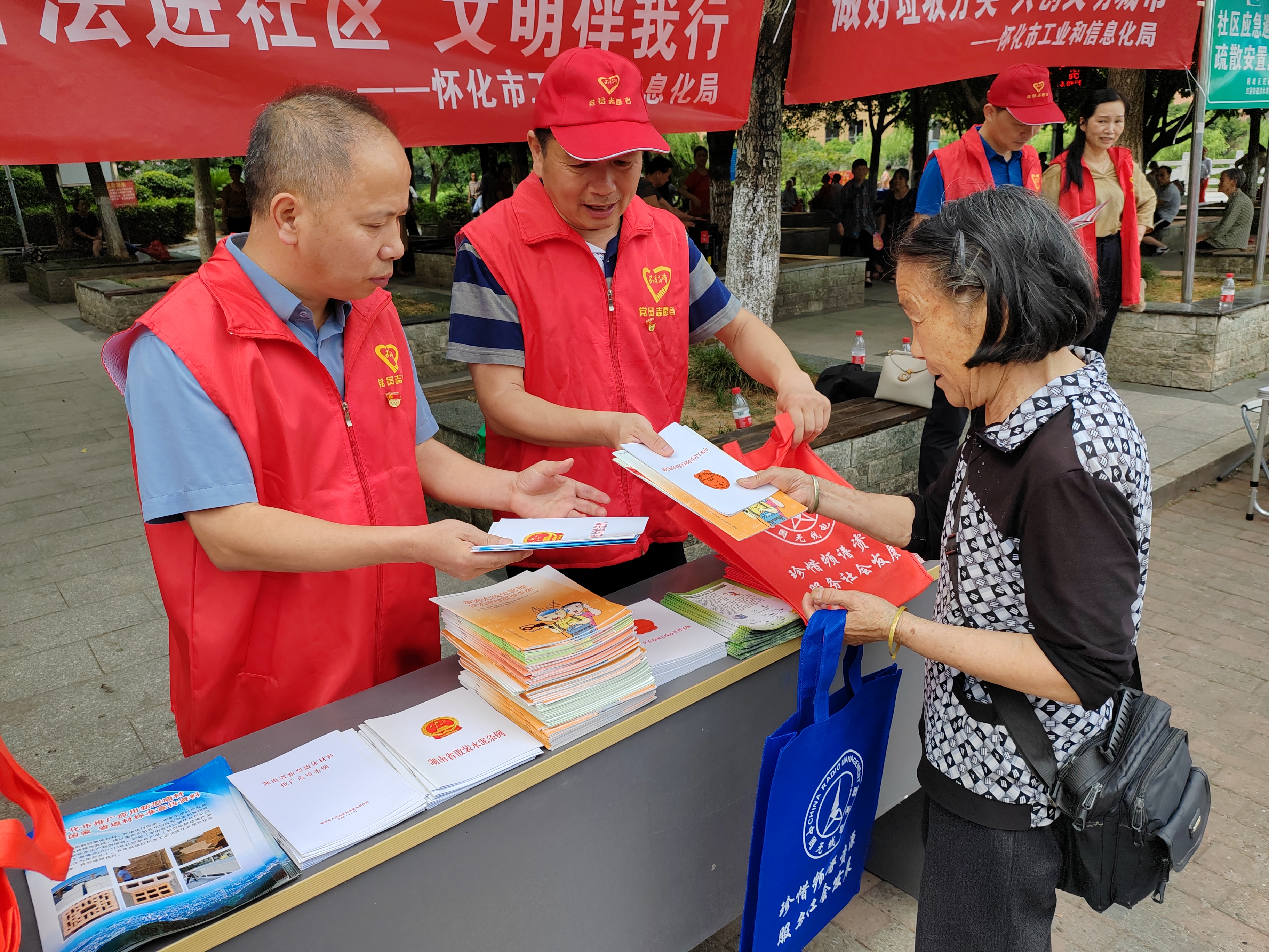 七月十四日,懷化市工業和信息化局幹部職工誌願者冒著酷暑炎熱,走進對口幫扶的清水灣社區,開展政務公開一係列“普法進社區,文明伴我行”主題宣傳活動,為居民群眾帶來憲法、民法和居民生活相關的電力法規、安全生產法規等知識宣傳冊。