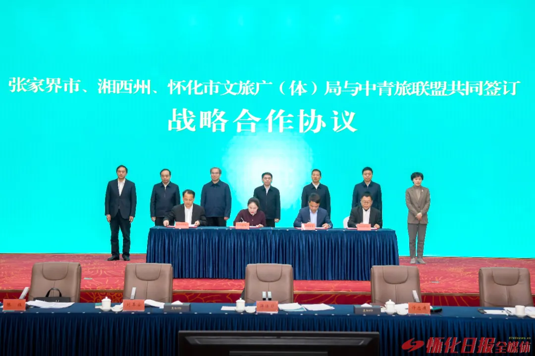 (三市州文旅廣(體)局與中青旅聯盟共同簽訂戰略合作協議。以上照片均由懷化日報全媒體記者 楊智偉 攝)(湖南日報全媒體記者 周紫雲 易鑫 懷化日報全媒體記者 補秀梅)