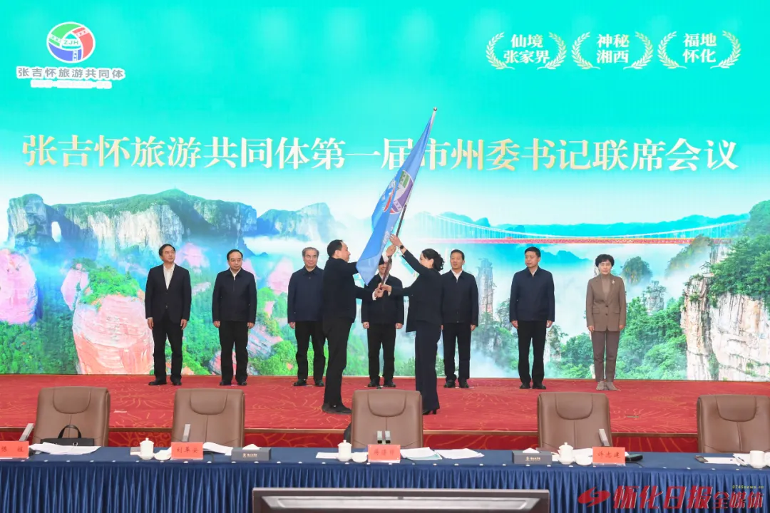 現場,懷化市接過張吉懷旅遊共同體會旗,成為新一屆輪值主席單位,未來將以張家界、湘西自治州、懷化的順序每年輪值。