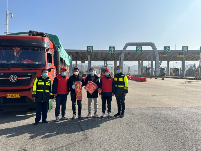 與此同時,在懷化高速公路各收費站、服務區,到處都有身穿紅馬甲、投到小紅帽的“路燈”誌願者在人群車流中來回穿梭的身影,新春“福”字、暖心薑茶、引導指路、發放口罩……一幕幕溫馨的畫麵正在四處上演。“剛回到家鄉就收到這麽大個‘福’字,新年一定好運連連。”在靖州收費站出口,周師傅領到一個大“福”字開心地說。