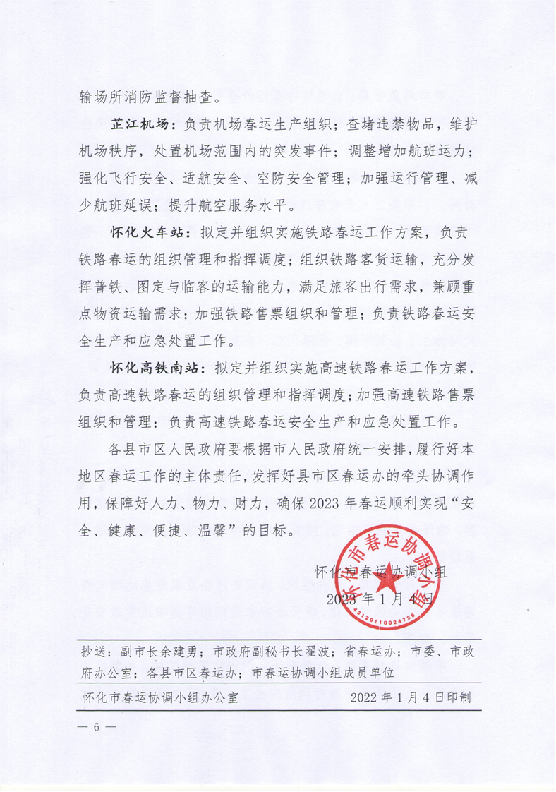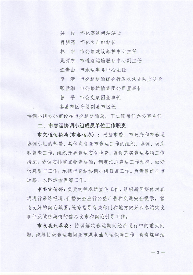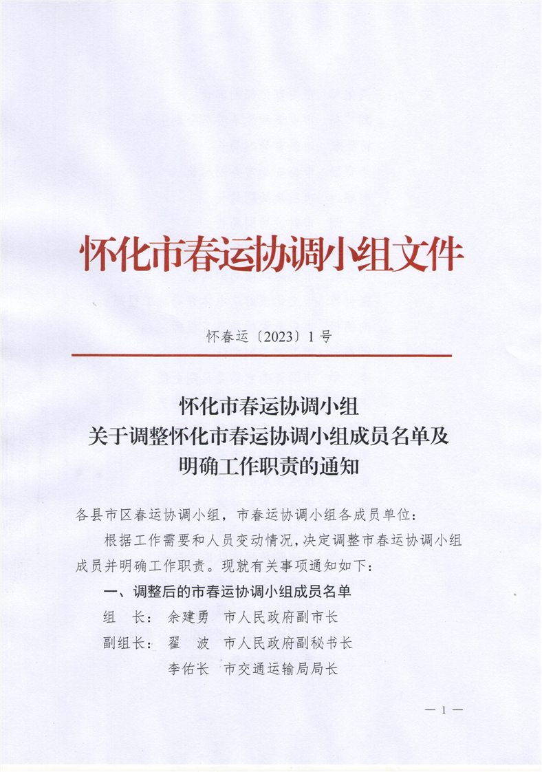 懷春運〔2023〕1號 關於調整懷化市春運協調小組成員名單及明確工作職責的通知