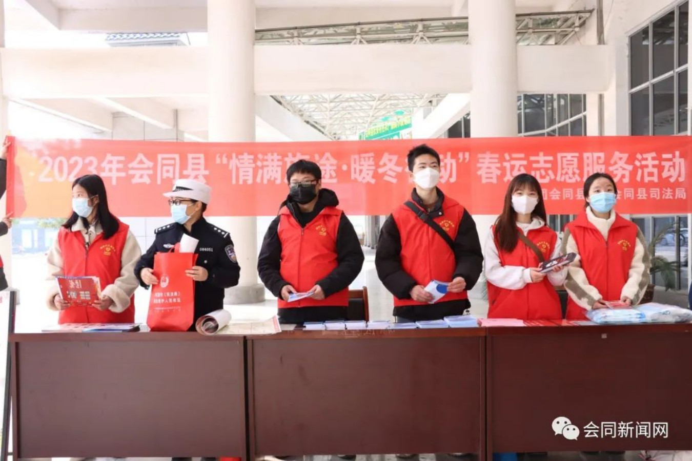 1月10日,團縣委、縣司法局等單位在縣汽車站開展“情滿旅途·暖冬行動”春運誌願服務活動。