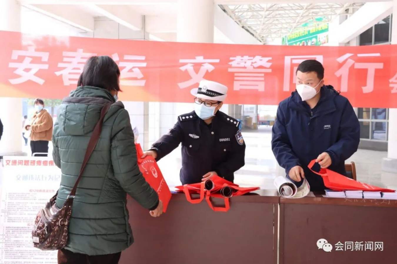 工作人員與誌願者在車站入站口搭建服務台,開展交通安全科普宣傳,並針對不同旅客需求,提供問詢指導、安檢協助、行李幫提等服務,還為廣大旅客送上年畫、口罩、手提袋等物品,用一顆公益心溫暖旅客回家路。誌願者們忙碌的身影穿梭在車站內外,形成了一道亮麗的風景。