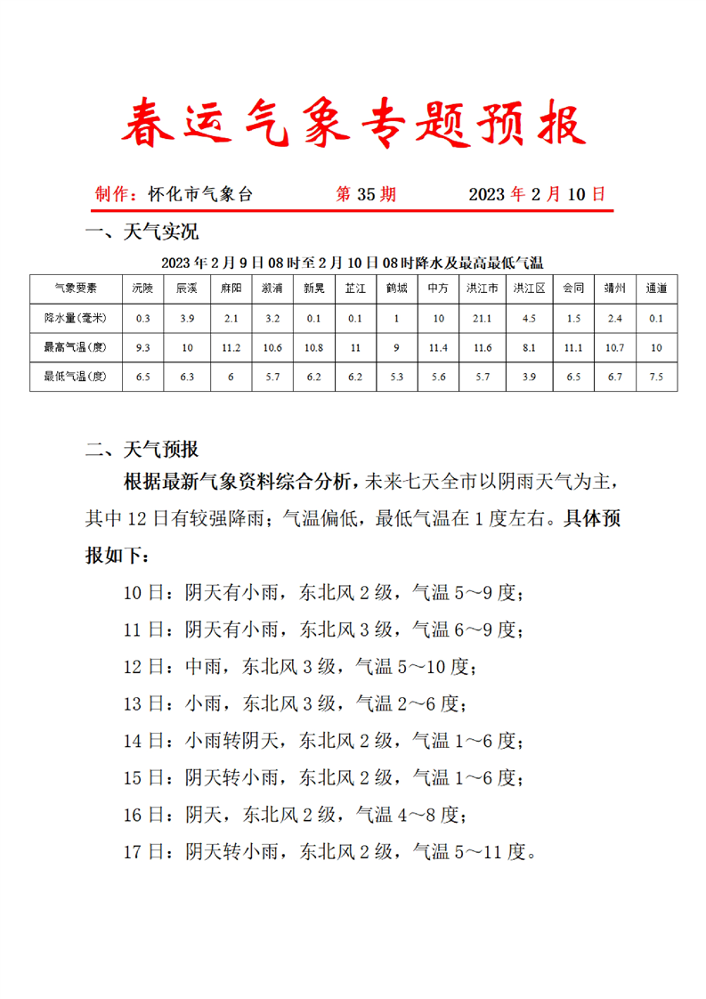 春運氣象專題預報 第35期