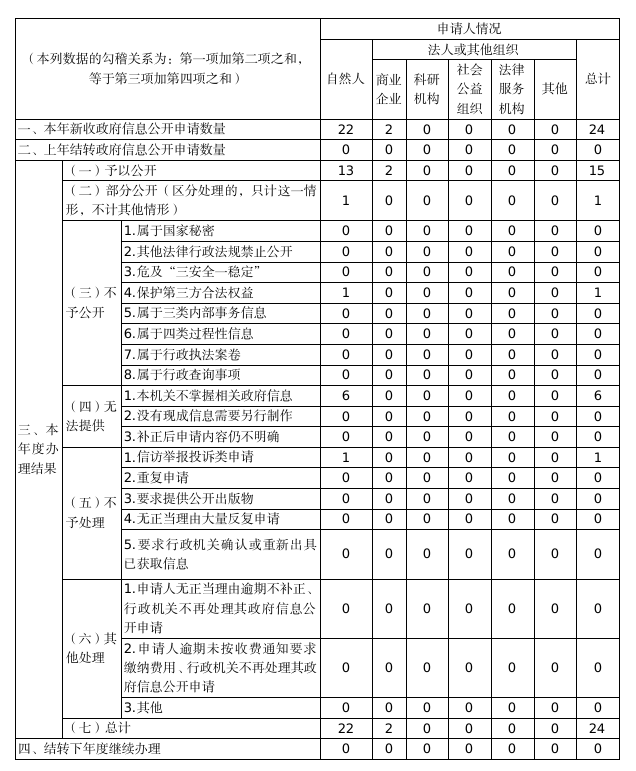 嚴格執行政府信息公開條例有關依申請公開的規定,依法辦理政府信息公開申請件。全年收到9件線上信息公開申請、15件線下信息公開申請,均已按時辦結。在行政複議、訴訟方麵,也未收到有關政府信息公開的行政複議申請,也未發生關於政府信息公開的行政訴訟案件。