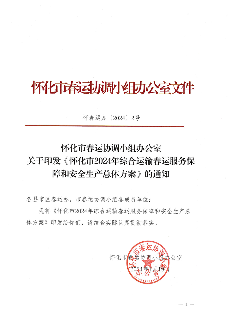 懷化市春運辦關於印發《懷化市2024年綜合運輸春運服務保障和安全生產總體方案》的通知