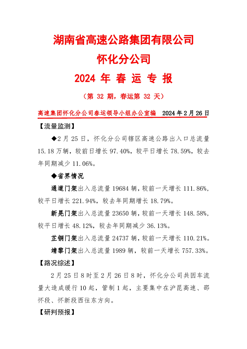 2024年懷化分公司春運專報-第32期