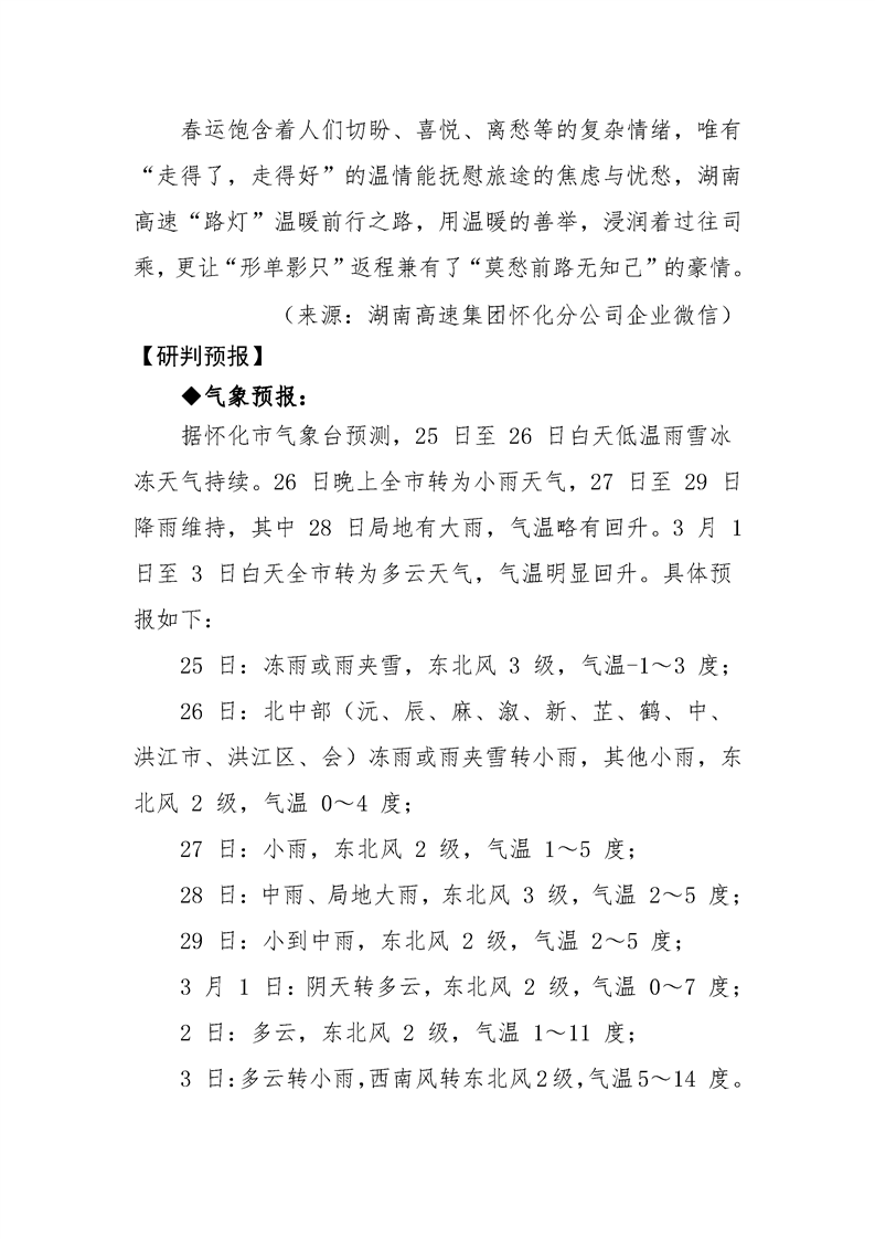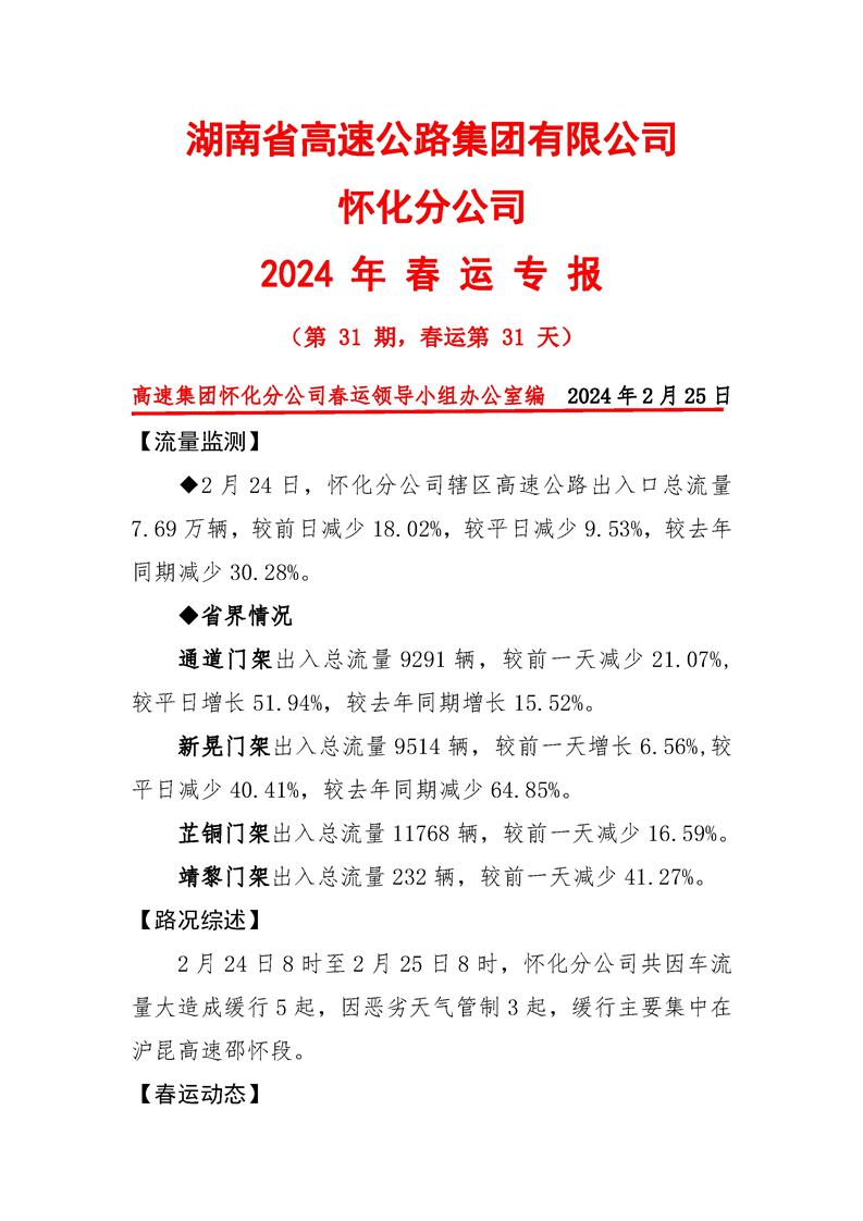 2024年懷化分公司春運專報-第31期