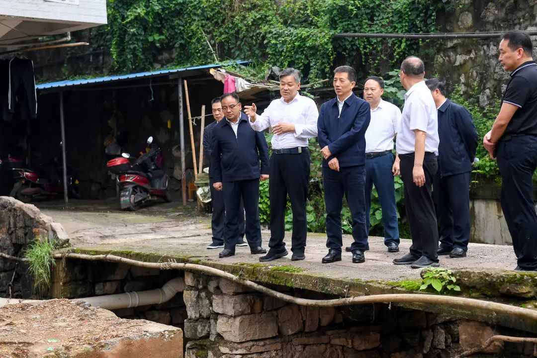 (5月12日上午,市委書記許忠建在城區調研督導生態環境問題。圖為許忠建來到茅穀衝溪片區察看了解雨汙分流改造工程進展情況。懷化日報全媒體記者 楊智偉 攝)