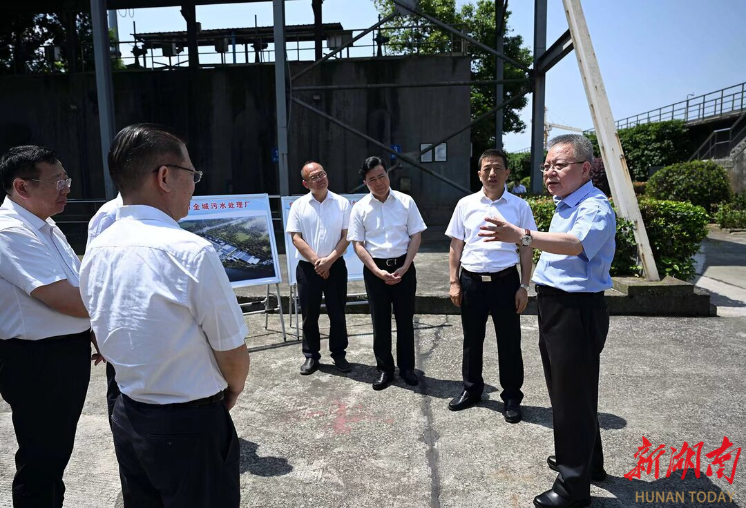 沈曉明在懷化市全城汙水處理廠實地察看進水口采樣點、中控室和實驗室,了解監測數據記錄、水樣檢測等情況