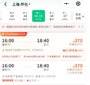 該航線由金鵬航空執飛,每周飛行三班,班期為每周二、四、六,來程航班號為Y87579,16:00從上海浦東起飛,18:40到達懷化芷江,回程航班號為Y87580,19:50從懷化芷江起飛,22:10到達上海浦東。具體的航班時間和票價信息已在各大售票平台公布,旅客可根據自己的出行計劃提前購票。
