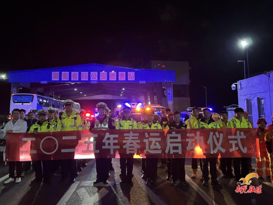 1月13日晚,新晃縣交通運輸局、懷化支隊芷江大隊、新晃高速管理所、新晃縣人民醫院等部門聯合在湖南省際公安檢查站舉行2025年高速公路春運工作啟動儀式。