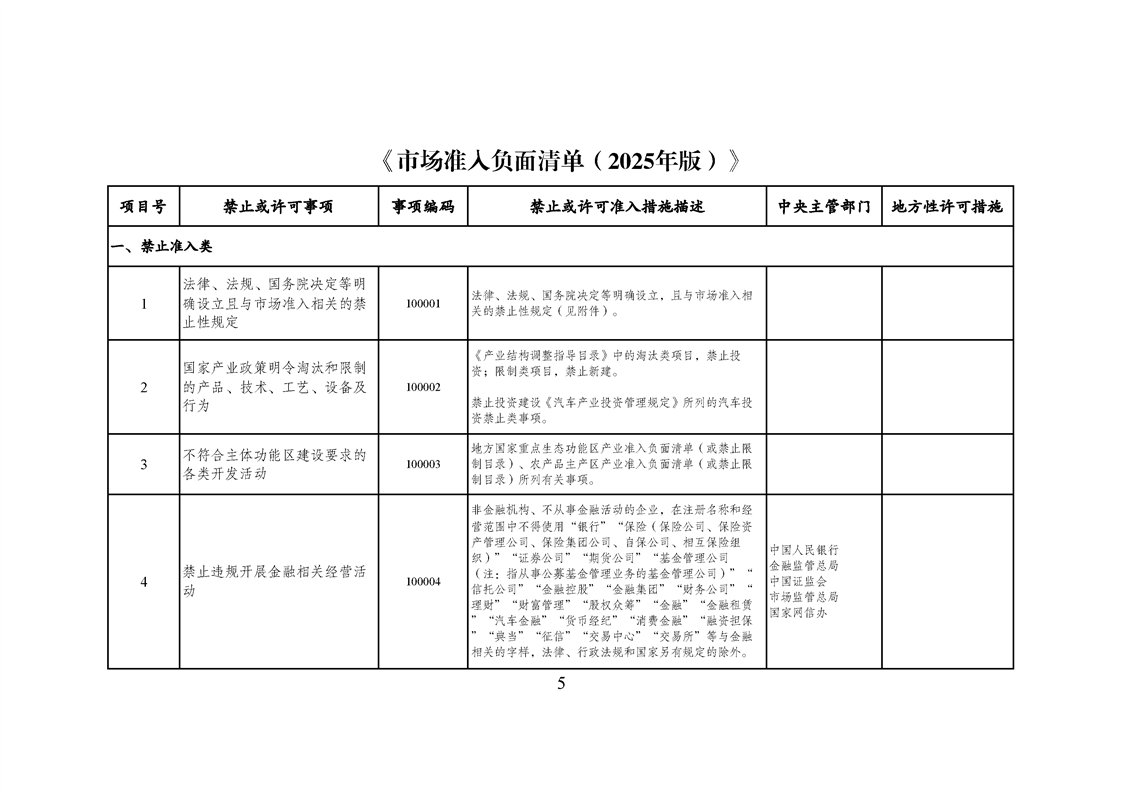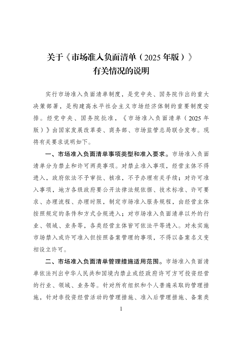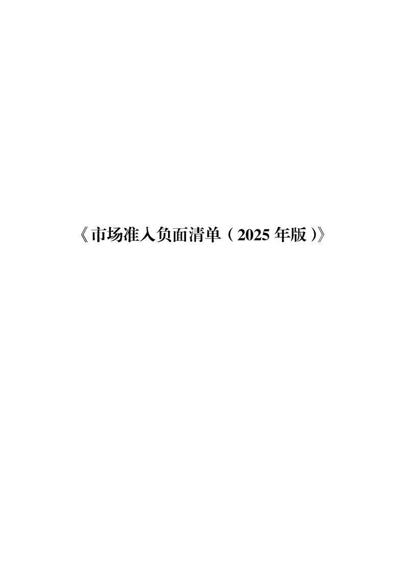 《市場準入負麵清單(2025年版)》