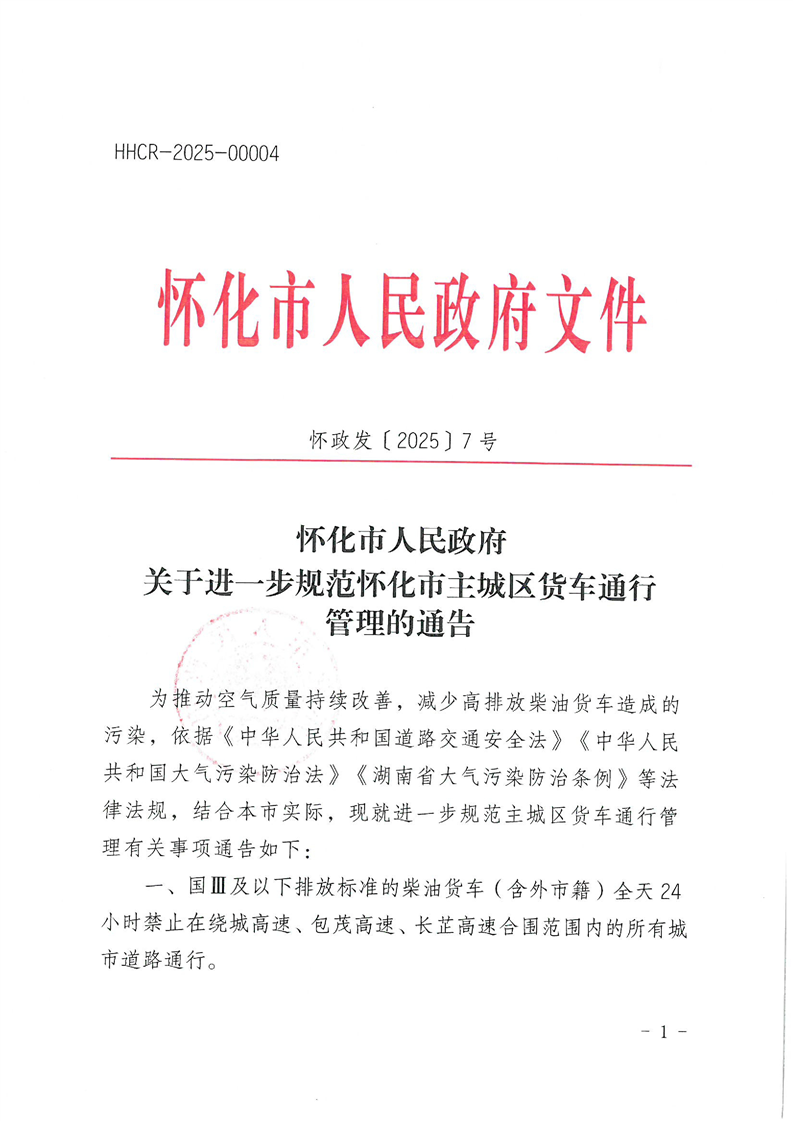 懷化市人民政府關於進一步規範懷化市主城區貨車通行管理的通告