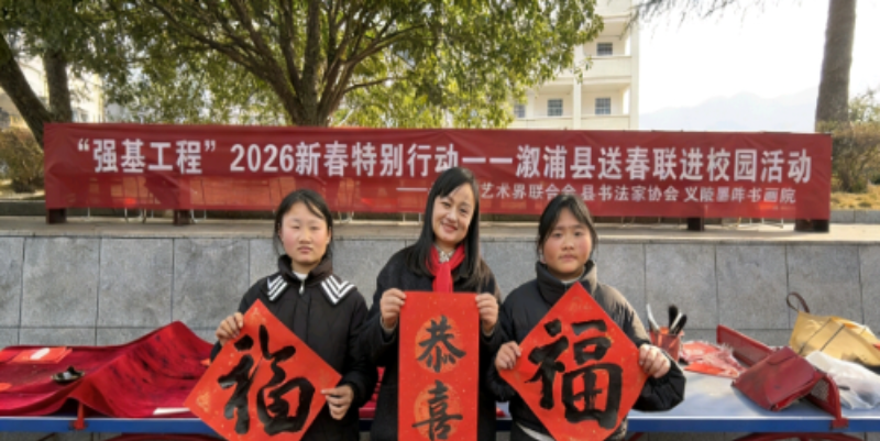 1月14日,漵浦縣文聯聯合縣書法家協會、義陵墨陣書畫院,在兩丫坪社區和兩丫坪中學開展"強基工程"2026新春特別行動——送春聯進校園進社區活動,將濃濃年味和暖暖春意送到群眾家門口。
