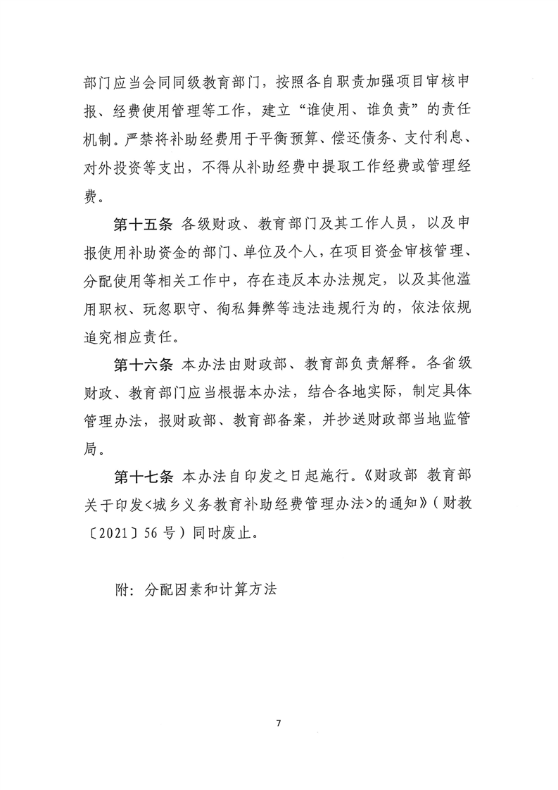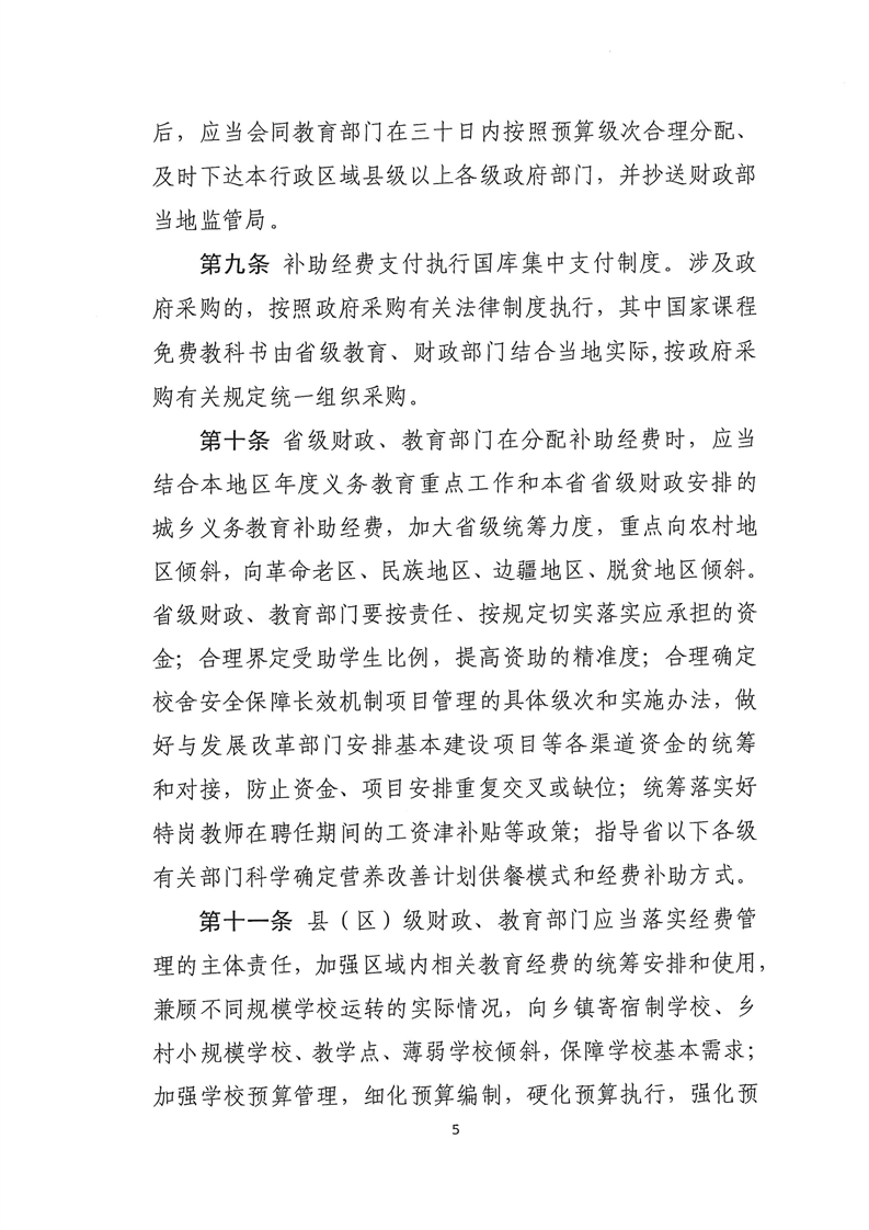 財政部 教育部關於印發《城鄉義務教育補助經費管理辦法》的通知
