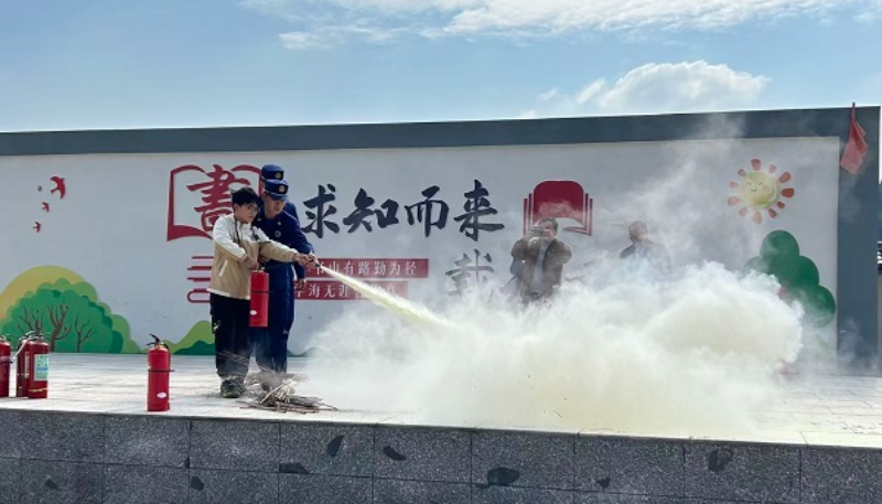 上午10時,演練正式開始,演練設定為:學校綜合樓2樓教室發生火災,發現起火後,學校老師立即啟動消防警報器,並撥打119報警。學校老師指導學生,用濕毛巾或手帕捂住口鼻、彎腰沿著安全出口、疏散樓梯有序、快速地撤離火災現場,全校師生從教學樓內全部轉移到操場安全區域。演練結束後,大隊宣傳人員結合近期發生的典型火災案例,向師生們講解火災的危害性,圍繞校園消防安全,按照“會報警、會疏散、小火會用滅火器、大火會用消火栓”的目標,向師生們介紹了發生火災時如何報警、撲救初期火災、火場逃生、自救與互救、緊急避險、宿舍用火用電安全、宿舍和家庭防火等消防安全知識。隨後,大隊宣傳人員還詳細講解了滅火器的正確使用方法,讓部分學生上台進行滅火器撲救油盆火災的演練體驗通過親手操作,正確掌握如何使用滅火器,鞏固培訓效果。