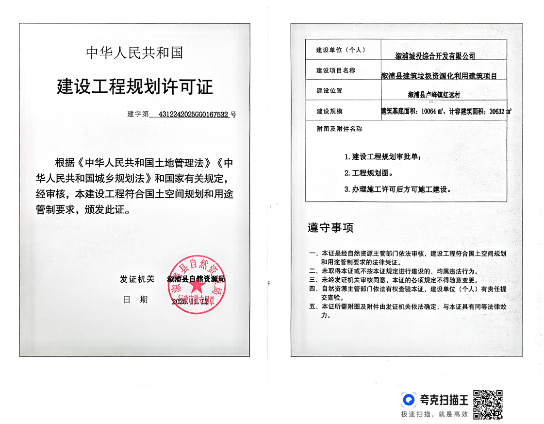 漵浦城投綜合開發有限公司建設工程規劃許可證